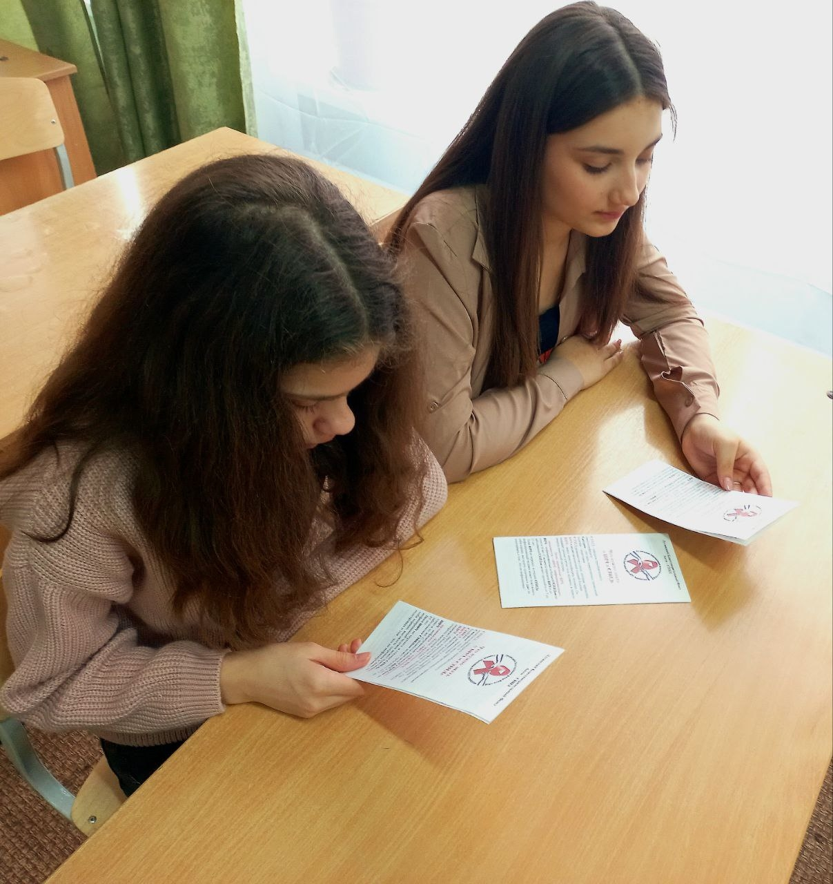 В 7-А классе ГБОУ ЛНР «Гимназия № 36 имени Г. К. Жукова» библиотека провела превентивную беседу на тему «СПИД». Библиотекарь рассказала ребятам, что цель учреждения Всемирного дня борьбы со СПИДом — повысить глобальную осведомлённость о ВИЧ / СПИДе и продемонстрировать международную солидарность перед лицом пандемии. Семиклассники посмотрели тематическую презентацию и послушали о том, что такое ВИЧ и СПИД, чем они отличаются, важные факты об этом заболевании и возможные пути заражения «чумой ХХ века». В завершение мероприятия школьники приняли участие в блиц-опросе, и каждый желающий получил информационные памятки о ВИЧ и СПИДе.